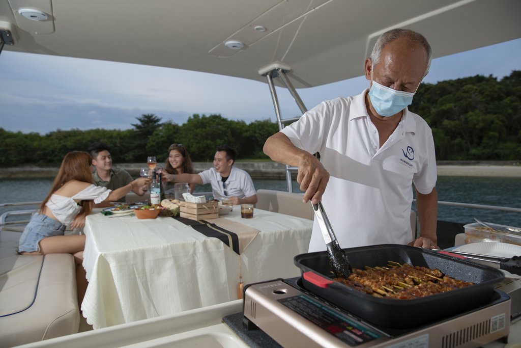 Get ready for a ball of a time on an exclusive private charter on the Synergy! Have a splash of a time in the water with your friends and family with our kayaks, stand-up paddles and magic carpet. Explore the seas with our snorkels and see what lies beneath the waves. Other fun add-on activities includes the sea scooter, water trampoline, bull ride, and many more.